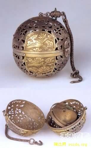 唐代的被中香炉,可以把被子熏得香香的,还暖烘烘。