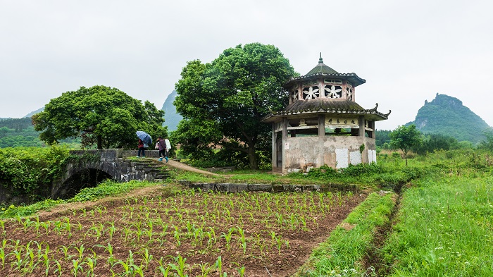 一个人口不足千人的村子,竟有两座明代的大石拱桥,还有文庙、武庙、宗祠、佛寺,以及保存较完整的17座清代古宅院,这在桂林并不多见,上桥古村是第三次全国文物普查中在桂林的一处重要发现,已于2013年列入中国传统村落名录。