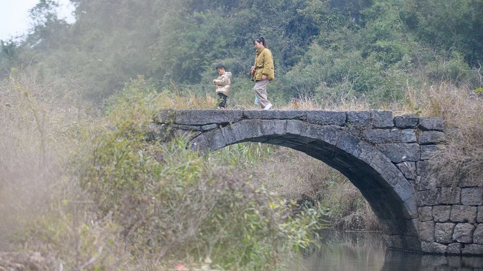 村庄民风相当淳朴,在村口问路,一名八岁男孩主动带我们找位置停车,陪着走到桥边。友人跟小朋友闲聊,问他怎么不像其他小孩在屋里玩手机,小家伙居然脱口而出“外面的自然风景更漂亮”,所以他喜欢在河边玩耍。 为表谢意,从车里拿了二只橙子给他,还不收礼,最后送了一本航拍画册给他纪念!以至于被这个正能量小孩触动,忘了拍桥的视频作业。