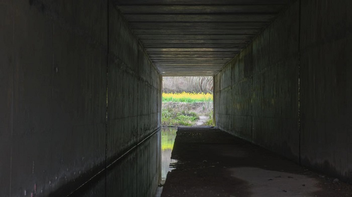 亮点:洞(高速公路涵洞)里有桥,桥外有花(油菜花)。适合人像拍摄、风光慢门拍摄出小溪拉丝特效。