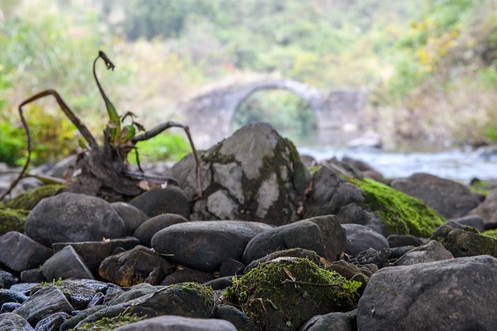 四孔等距排列,桥面大概有3米宽,10多米长。汉字“四”寓意深长,古代人造桥极少造四拱桥,要么三,要么五,古驿道马鞍桥偏偏就是四拱桥,先人为何造四拱桥不得而知。