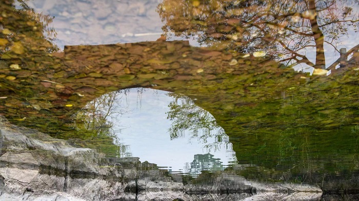 神奇之处是同一个地段,三颗千年重阳树伴着3座单孔古石拱桥!