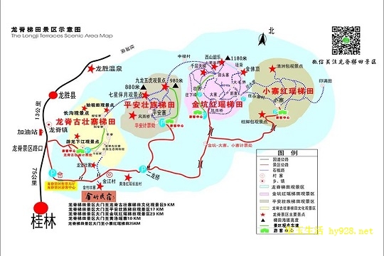 龙脊梯田景区地址:广西壮族自治区桂林市龙胜各族自治县龙脊镇
