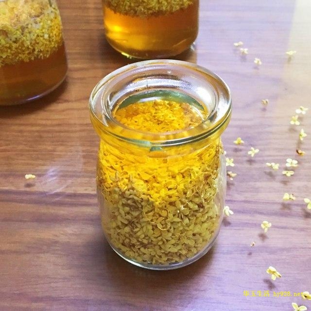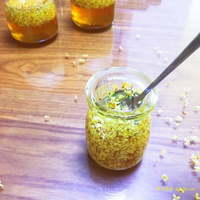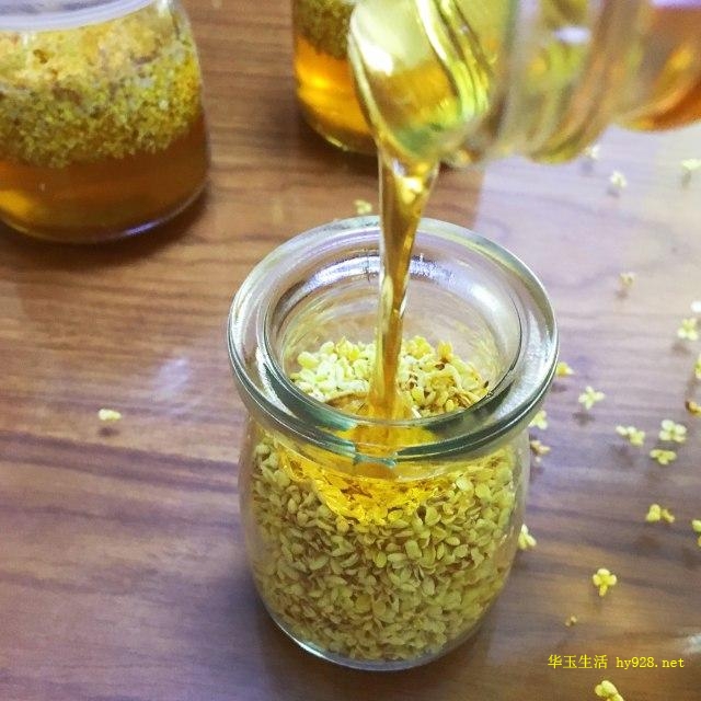 原料:头道鲜丹桂花(即八月开花的金黄色桂花一年中第一次开的花)200克、蜂蜜300克(如果没有可用白糖代替)。500ML干净玻璃瓶