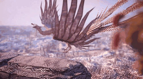 在科普的过程中,还不忘穿插了凤鸟飞落下来的特写: