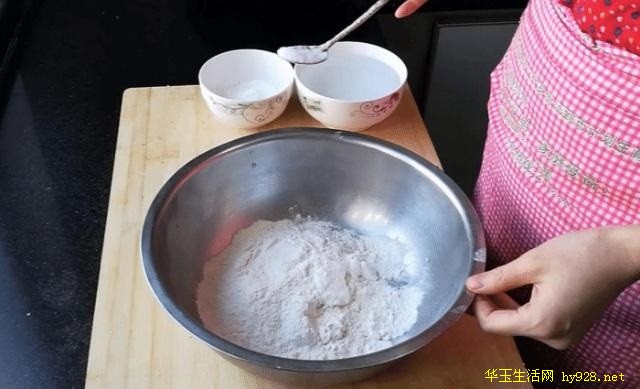 1.取一个盆,加入200克面粉,50克淀粉,7克盐,搅拌均匀。