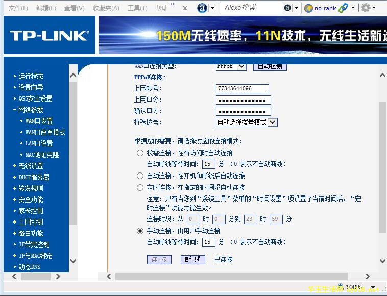 4、再设置路由器WAN口与LAN口,点击“网络参数”“LAN口设置”,把原LAN口192.168.1.1改成192.168.1.109,以免与总路由或其它LIN地址冲突,再把WAN口设置为手动连接