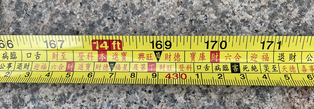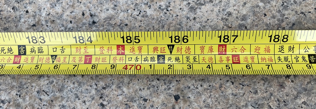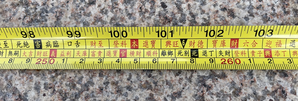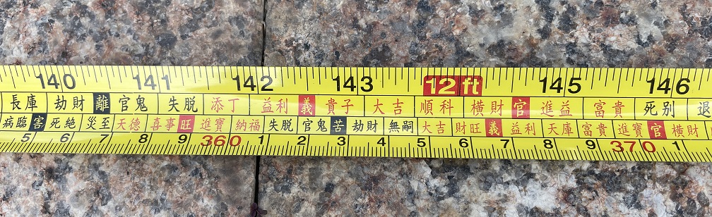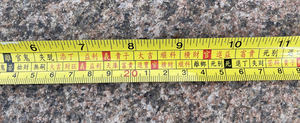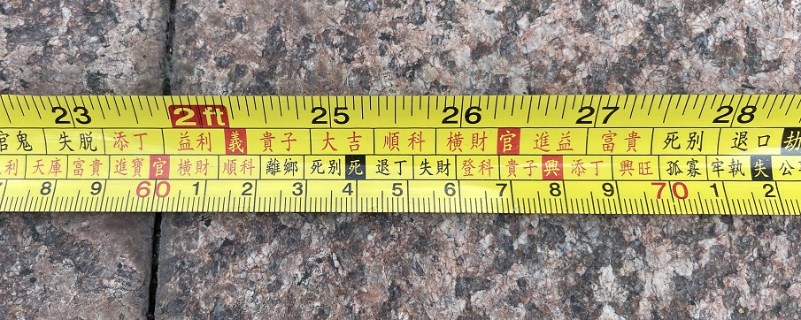 比如很多老板喜欢折腾大门,几年就来一次改造,过程中所有见光尺寸全部参考鲁班尺,尤其是门槛石的宽度,必须特别谨慎的比对“吉利尺寸”,最后亲自上阵小心翼翼的安放!