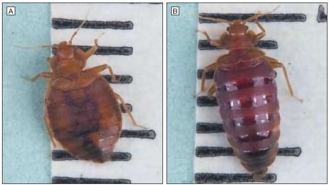 卵盖处钻出,形似成虫而较小,蜕皮5次后变为成虫。在适宜温度(35~37℃)时,由卵发育至成虫约需1个月左右。气候温暖处 ,1年至少可有5、6代。若虫及雌雄成虫都吸血,主要吸人血,也吸鼠类、兔等的血液。吸血量可超过虫体重量1~2倍。冬季停止吸血和产卵。成虫耐饥力强,可1年不吸血。臭虫对人体的危害主要是夜间叮咬吸血,扰人睡眠。叮咬时,其唾液注入皮内,中含异性蛋白质,可致局部红肿,奇痒难忍。若长期被较多臭虫叮咬,可产生贫血(尤其是营养不良者)、神经过敏及失眠,严重影响健康。虽然在实验室内臭虫可传播回归热螺旋体、鼠疫杆菌等病原体,但尚未证实在自然状态下臭虫能传播疾病。除经常洗晒卧具、床榻及消除墙壁缝隙外,还可用化学或物理方法杀灭臭虫。50%马拉硫磷乳油、90%敌百虫等各以水稀释100倍,或以50%敌敌畏乳油配200倍水喷洒或涂刷于其活动与栖息场所,可杀死成虫和若虫;也可用沸水直接浇灌其隐存的缝内,将其烫死。若虫得不到血食,可活30天以上,成虫得不到血食,通常可活六七个月。