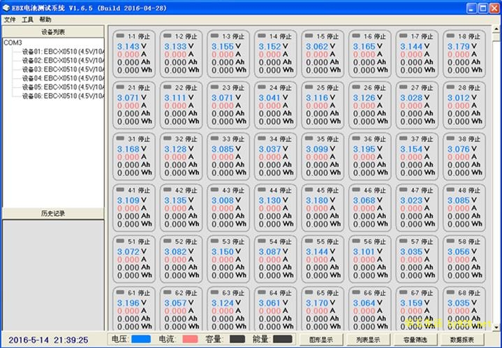 分容柜或称分容仪(图6-6),主要用于单体电芯的容量和循环寿命检测。其工作原理是通参数设置自动对电芯充电、静置、放电,以检测电芯的SOC和实际容量。也可以通过记录电芯充放电的循环次数检测电芯的实际使用寿命。在组装时如果所采购电芯一致性很差,可通过分容柜再进行一次分容配对以提高一致性,在维修电芯未标注容量时可通过分容检测电芯容量。