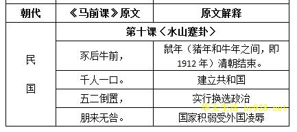 〈水山蹇卦〉初六爻辞“来誉”, 意思是大家都说好 “千人一口”预言共“和”,六二爻到九三爻辞句“往蹇。来反”!二为牛,而九三,九加三得十二,十二生肖为“猪”,“豕后牛前”预言的是一鼠年(1912年壬子),中华民国成立 九五爻辞“大蹇。朋来”、“朋”字有人人平等之意、易卦中“九五”是帝王之尊、 “五二”爻辞为“王臣蹇蹇”,“五二倒置,朋来无咎咎”预言民齤主,更妙的是 “无咎”意为没了长辫子了。但带了还“有毛毛”的内涵。加诸“共和“,暗指之后的中国将进入“毛共”时代。
