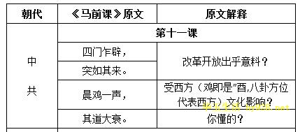 按马前课之前的解释,每课对应一个关键时代,那么十一课就是现代。