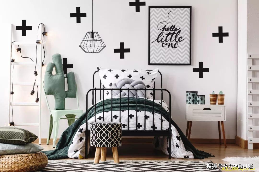 ③半墙粉刷:给床头这面墙刷上喜欢的颜色(深色系更佳),既能打破大白墙的单调,又能适当地降低房间的亮度,帮助入睡。