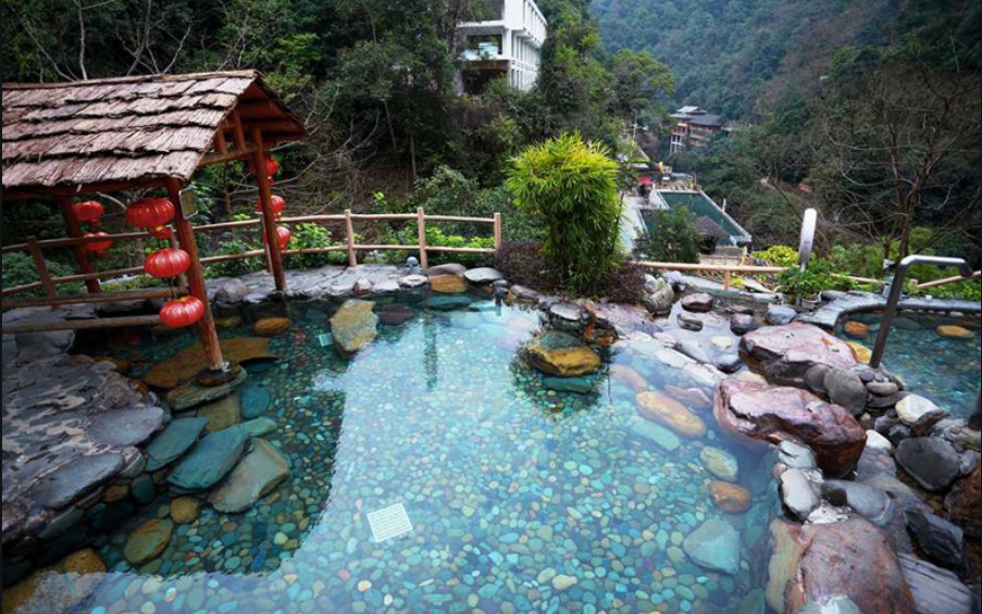 龙胜温泉,距离桂林137公里,位于龙胜县城东北32公里的矮岭溪边龙胜温泉,从县城乘车需40分钟可到达。温泉由地下1200米深处岩层涌出,水温在45℃—58℃之间,水中含有锂、锶、铁、锌、铜等十几种于人体有益的微量元素。