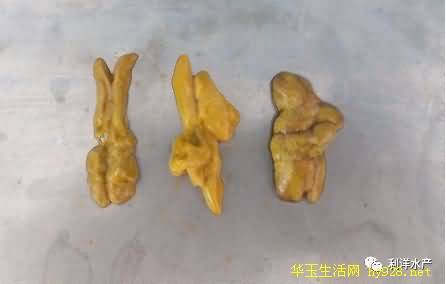 正常小龙虾的肝脏颜色呈橘黄色,质地结实,病变后的肝脏呈浅黄或暗黄色,严重时呈糜烂状。