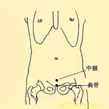 按摩方法:晚上临睡前,把手放在曲骨穴上,一按一松,按摩4--5分钟。