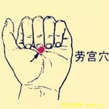 按摩方法:用一只手搓揉劳宫穴,2-3分钟即可,以手掌发热、发红为宜。