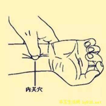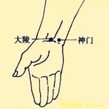 按摩方法:大拇指放在大陵穴,采取按压的方式,一按一松为1次,连续按压100次,两侧交替按摩,1天按摩2次。