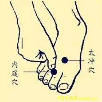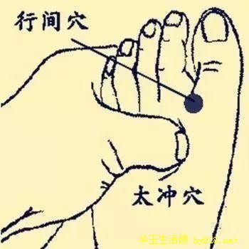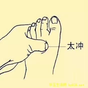 取穴位置:大脚趾和二脚趾交叉的部分,凹陷的部位。