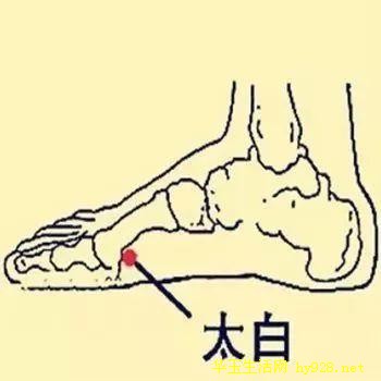 取穴位置:位于足内侧缘,当第一跖骨小头后下方凹陷处。