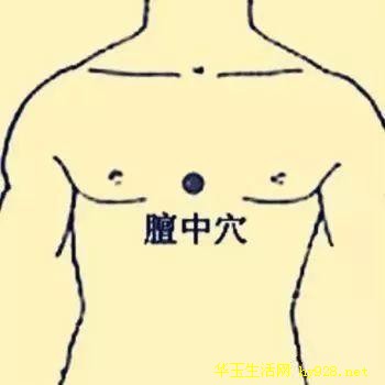 取穴位置:位于胸部前正中线上,平第4肋间,两乳头连线之中点。