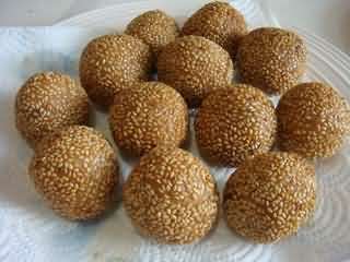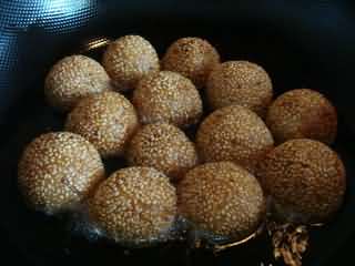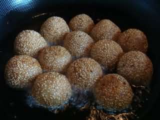 “麻团,小时候吃得比较多的一种点心,是用糯米粉加白糖、猪油和水揉制成形,再入油锅炸制而成。因其呈圆团形,表面又沾裹有芝麻,故名麻团。现在都提倡健康饮食,少油少盐,所以吃得比较少了。不过男的吃吃,还是很香的哦。”