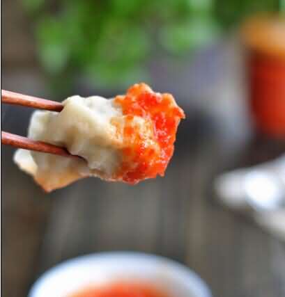 这是一款专门为了饺子而做的辣酱,酸甜口味的,不要被它的火红的色泽迷惑,其实它不是很辣。
