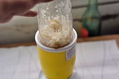 5、大蒜去皮后放入料理机,加少许精盐,开动机器,打成蒜泥。