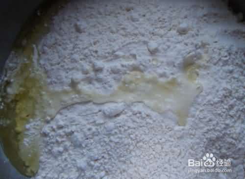 2、再在面粉盆中加入一个鸡蛋清,加入鸡蛋的饺子皮,包成饺子,煮熟后捞在碗里不容易粘住。