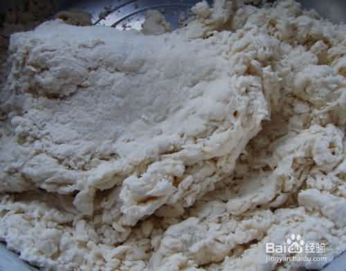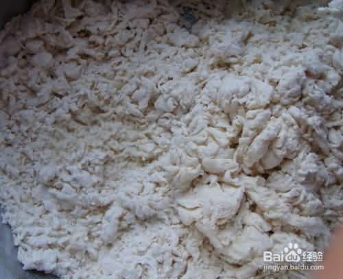 4、然后再用手把面疙瘩用力按压到一快儿,