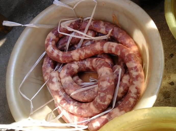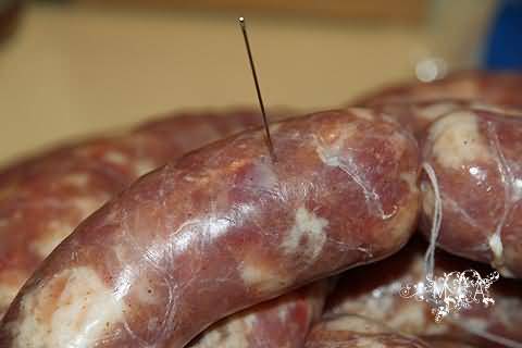 4、记得拿针扎几个洞,这样排出里面空气,使香肠更精致,烤干后依旧丰满好看。