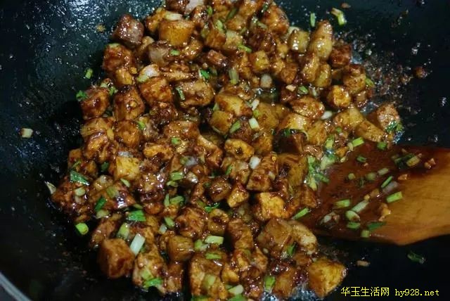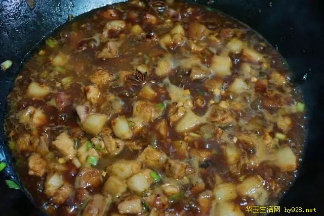 6. 加入一碗热水,没过肉丁,小火炖40分钟左右,至肉丁变软烂,收汁。