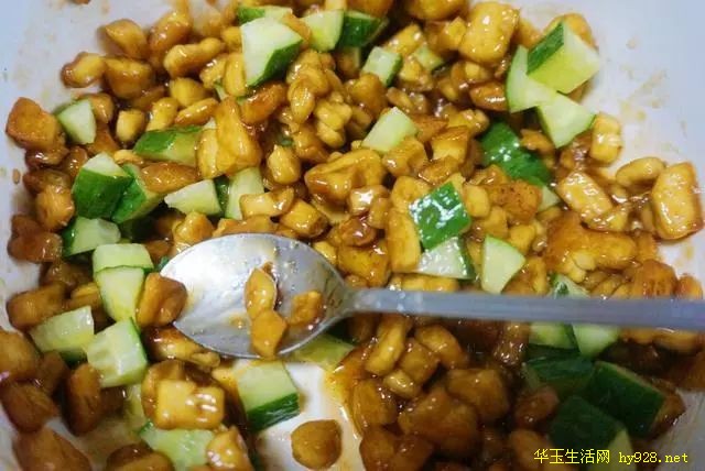 5.盛出晾凉后加入黄瓜丁。拌匀。