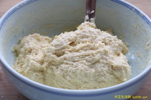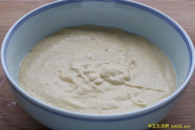 4、再分次少量加入面粉,拌成比较黏稠的面糊状态,密封放在一旁醒发;