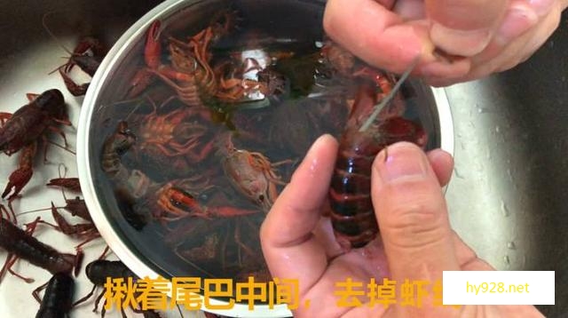 首先龙虾一定要买活的,死去的龙虾细菌多,把龙虾浸泡在清水里泡24小时,然后放上盐和醋浸泡几个小时,强迫龙虾吐出腮里的脏东西,这样换几遍水,让龙虾腮吐净脏污,然后用筷子辅助,夹起它的大腿,