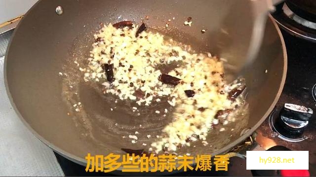 放入多些的蒜末爆香,大蒜有杀菌的作用,我特别爱吃蒜香小龙虾,又香,又安全