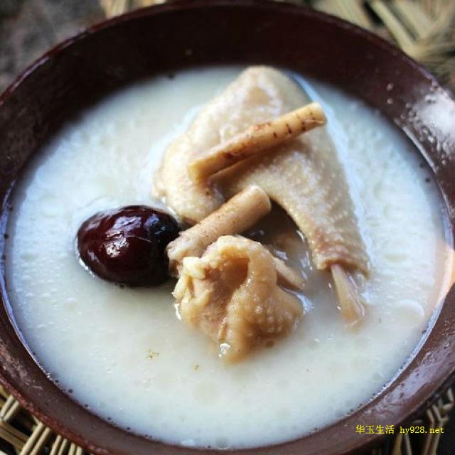 材料:五指毛桃根约50克、 红枣4个、光鸡(去皮)1只、瘦肉200克、生姜3片。